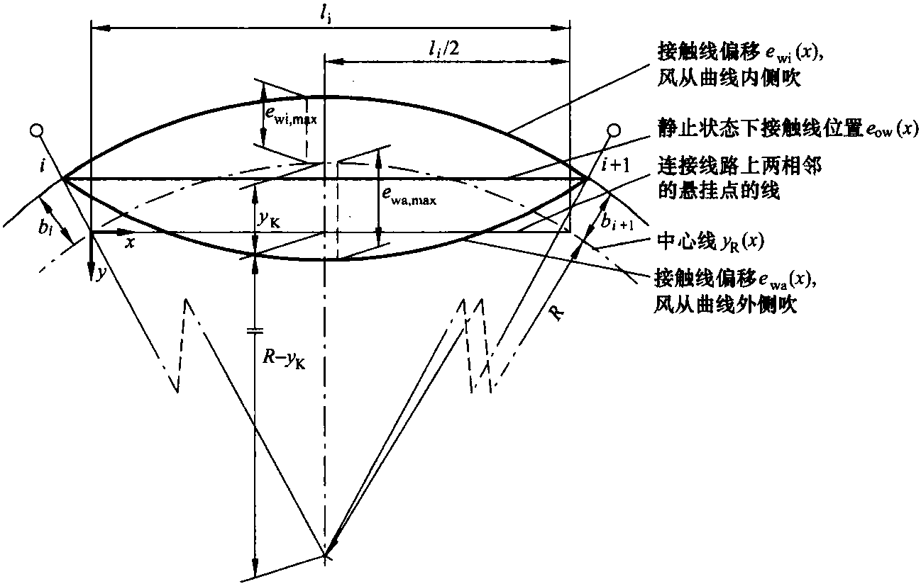 可按下式計算兩相鄰懸掛點i和i+1的連線距離線路中心線的位移絕對值yK