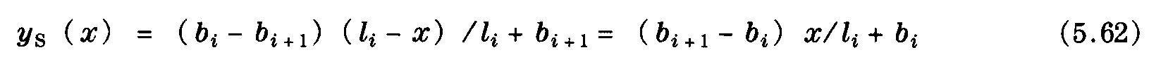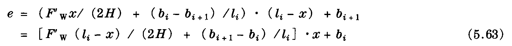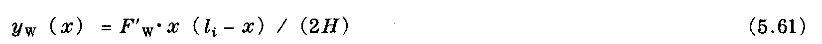 從表5.7中查出空氣動力阻力系數cw。與式 (5.34) 類似,單線的風偏移,例如電車型接觸網設施中的接觸線,在基準支撐右側點x處 (如圖5.11) 的情況可用下式表示
