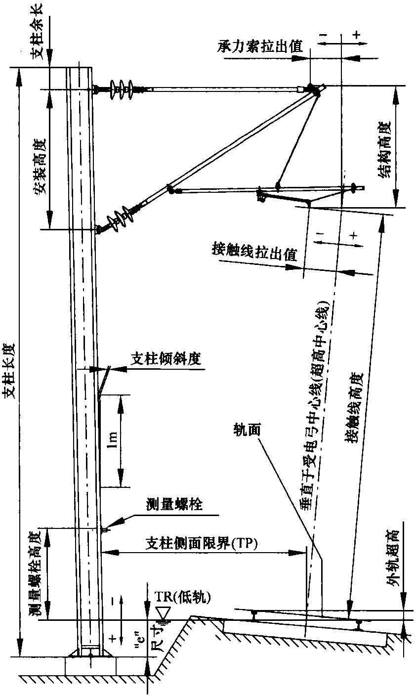 圖6.7 架空接觸網(wǎng)支持裝置處各種尺寸的設(shè)定值